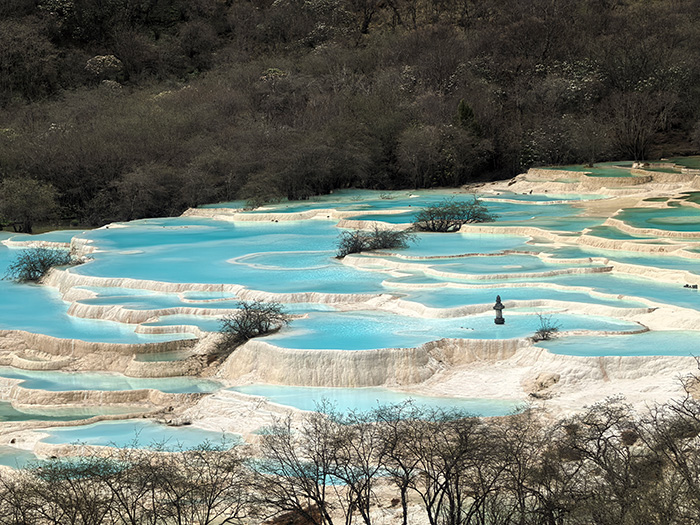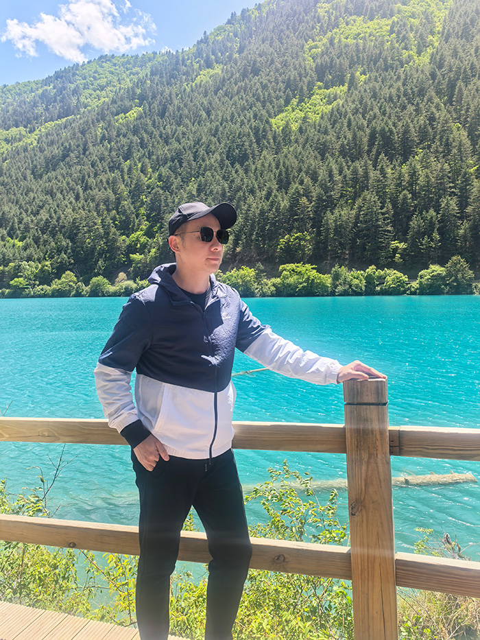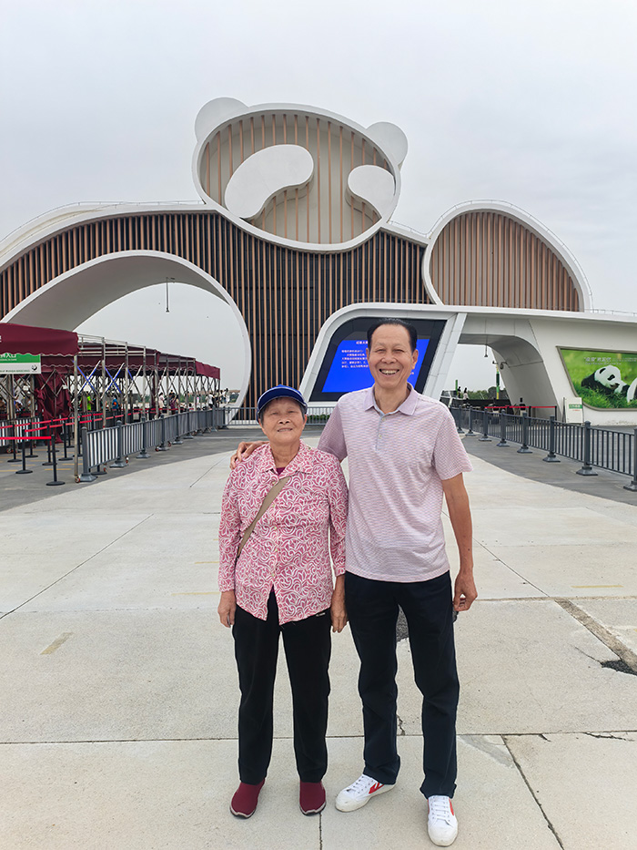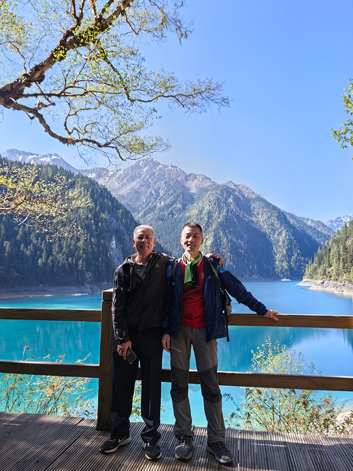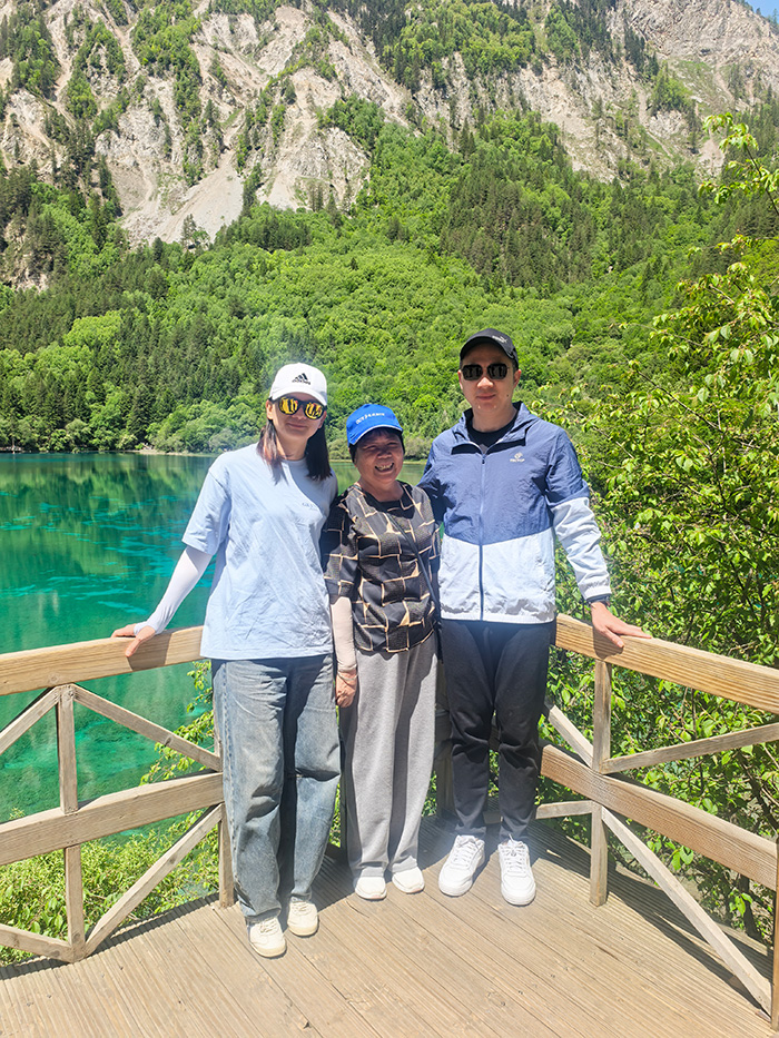 從成都乘動(dòng)車前往黃龍,我們與父母攜手登臨海拔3578米的“人間瑤池”。鈣化池如翡翠鑲嵌雪山之間,棧道上,父母雖步履稍緩,卻始終與我們并肩而行。